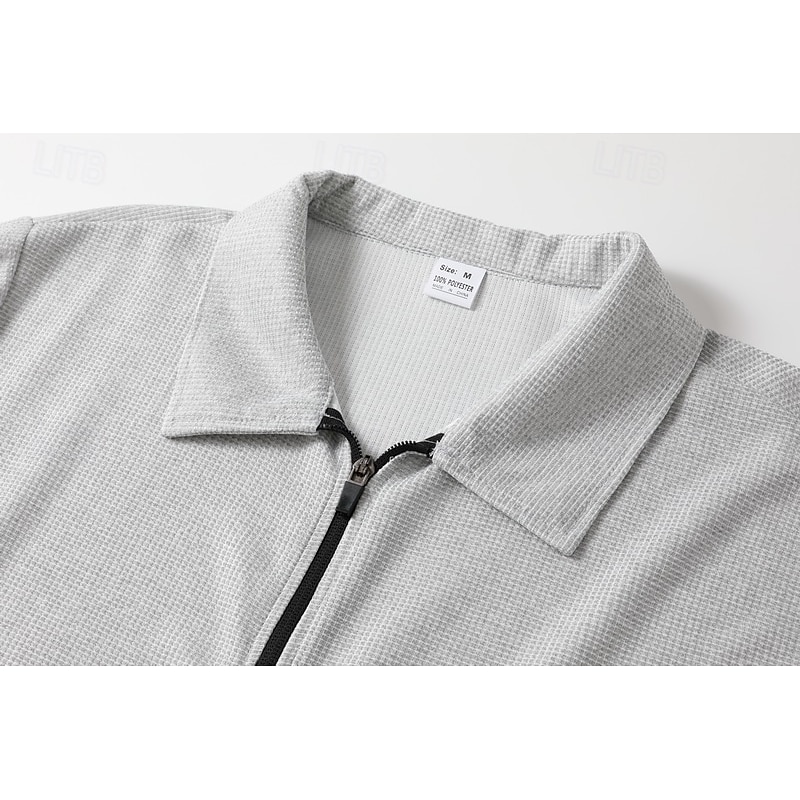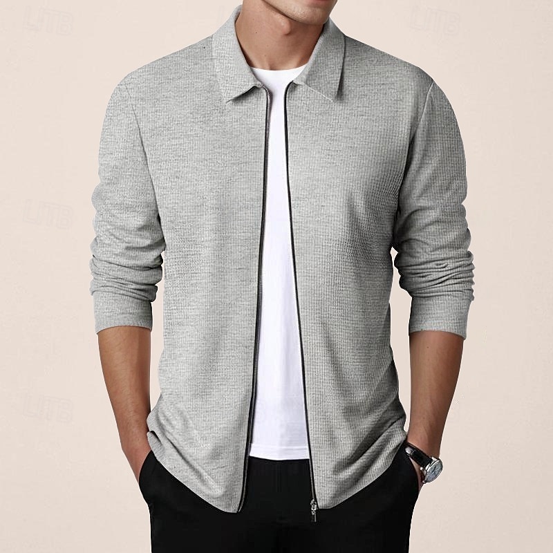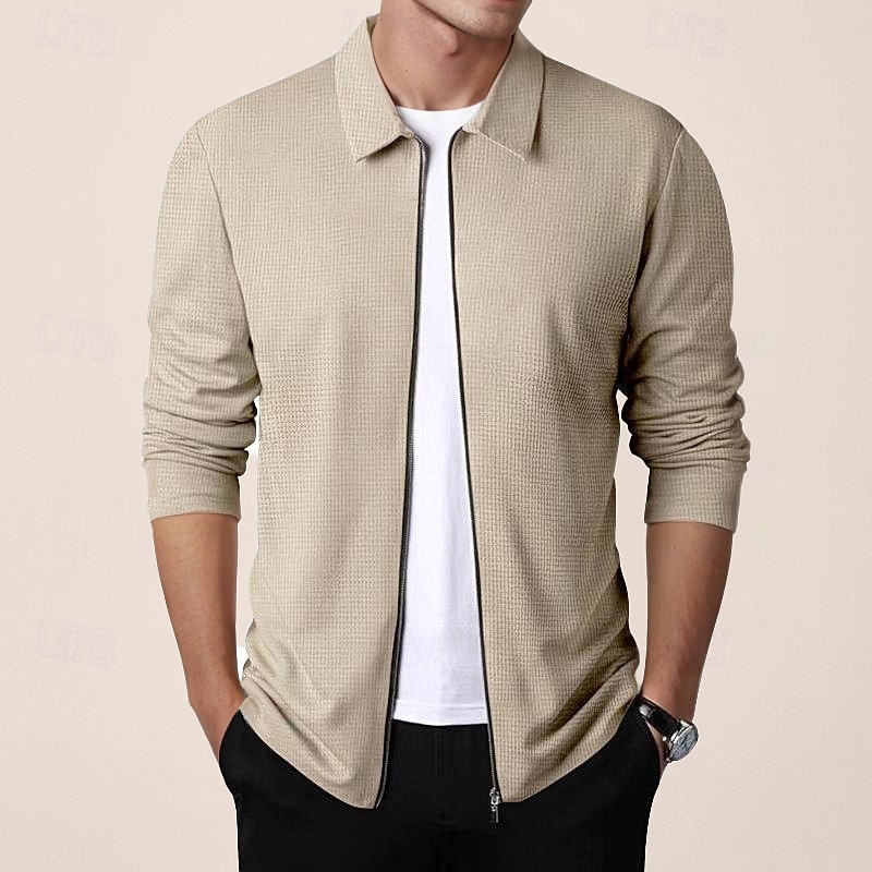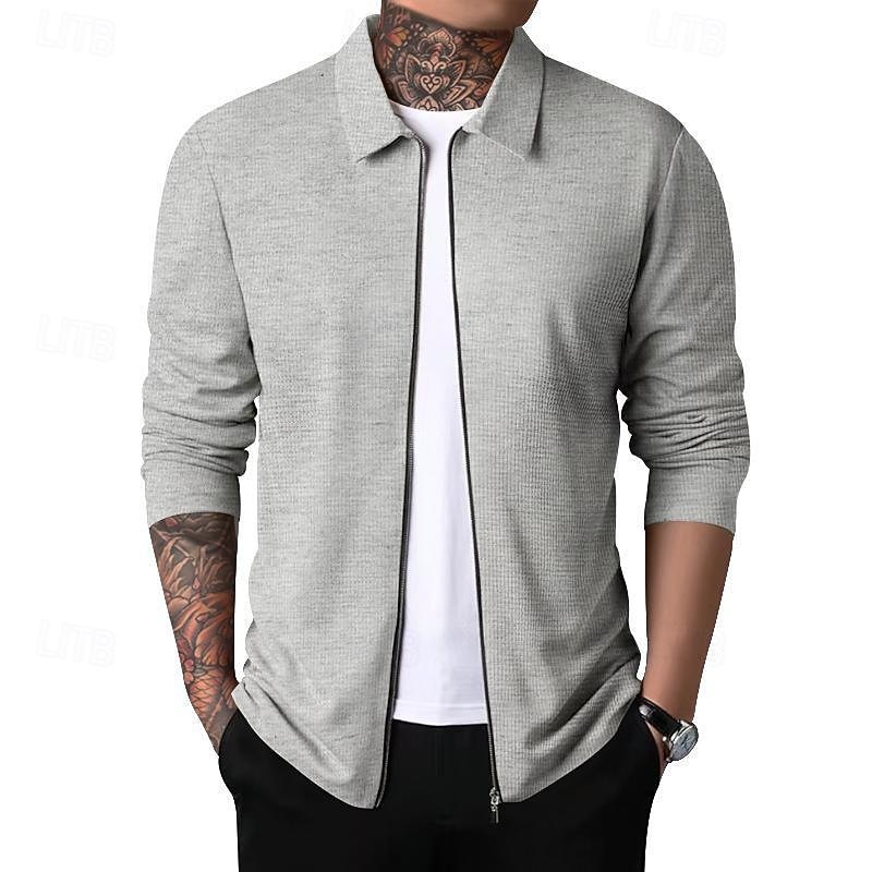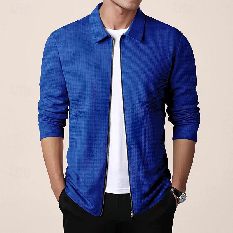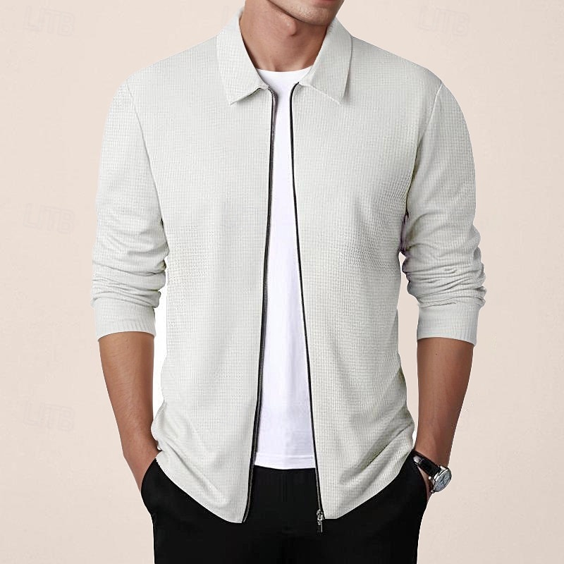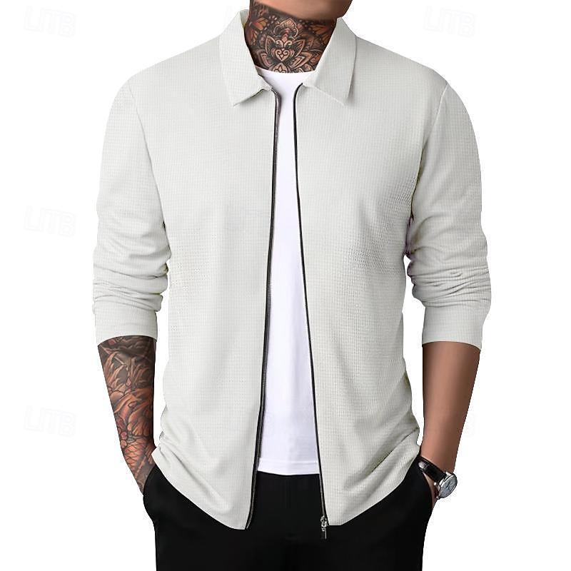 More information about Men's Shirt Jacket Transition Jacket Daily Breathable Pocket All Seasons Plain Classic Lapel Regular Waffle Fabric Black White Royal Blue Khaki Light Grey Jacket