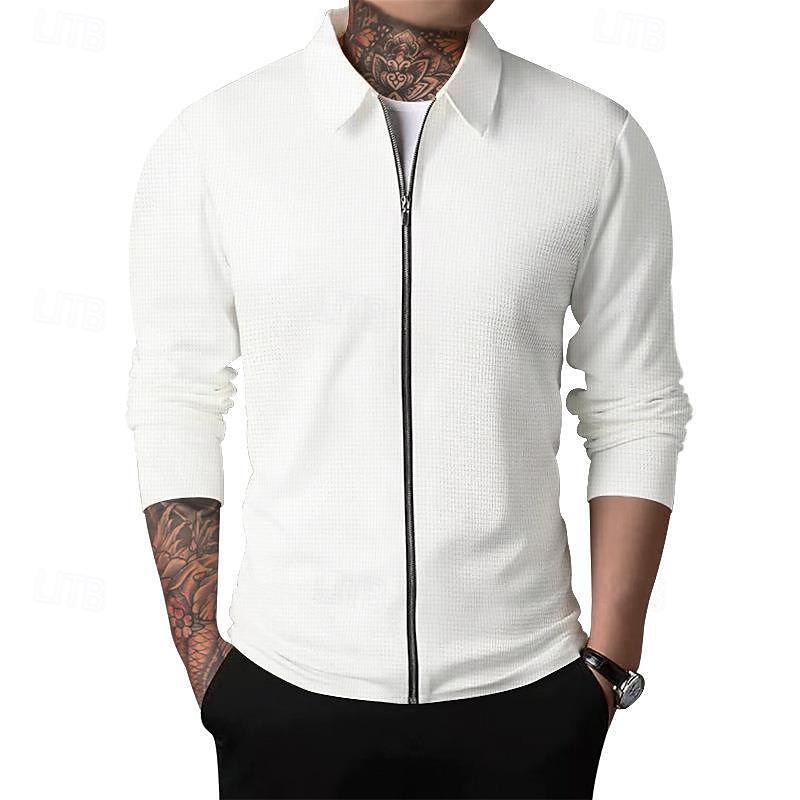 HOT ! Men's Shirt Jacket Transition Jacket Daily Breathable Pocket All Seasons Plain Classic Lapel Regular Waffle Fabric Black White Royal Blue Khaki Light Grey Jacket