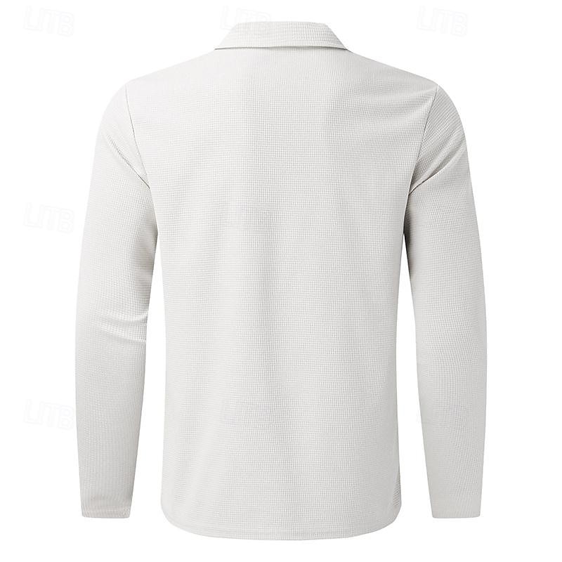 Men's Shirt Jacket Transition Jacket Daily Breathable Pocket All Seasons Plain Classic Lapel Regular Waffle Fabric Black White Royal Blue Khaki Light Grey Jacket 35