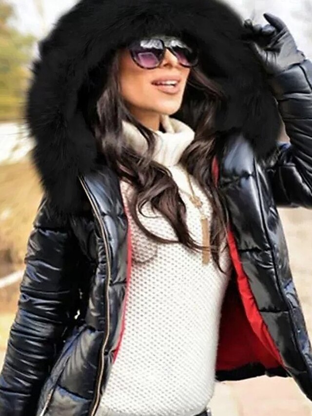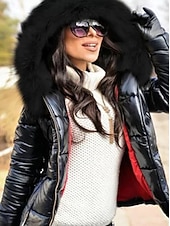 Highlights [Fabric:] Crafted from high-quality polyester, this women's puffer jacket boasts a glossy, sleek finish that exudes modern sophistication. The thick, fluffy faux fur hood offers added warmth and a touch of elegance, making it ideal for chilly winter days. [Fit:] Featuring a regular fit, this jacket provides comfort and ease of movement without compromising style. Its fitted silhouette enhances the wearer's figure, ensuring it flatters a variety of body types. [Design Highlights:] The jacket is designed with stylish patchwork details, adding a unique touch to its overall appearance. The striking red lining provides a bold contrast that stands out, while the long sleeves offer full coverage and warmth. [Occasions:] Perfect for daily wear, sports and outdoor activities, or as a fashionable choice for work, this puffer jacket is versatile enough to complement different occasions. Whether you're heading to the office or enjoying a winter outing, it keeps you warm and stylish. [Size Range:] Available in sizes S, M, and L, this jacket offers a range of options to accommodate different sizes, making it a suitable choice for many women seeking both comfort and style.