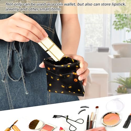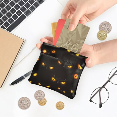 Dark Cats Glowing Eyes Coin Purse Leather Pouch Change Purse, Squeeze Coin Pouch for Cards, Keys & Lipsticks, Unisex 7
