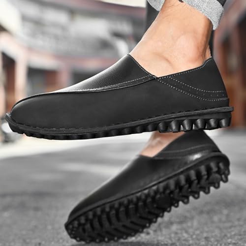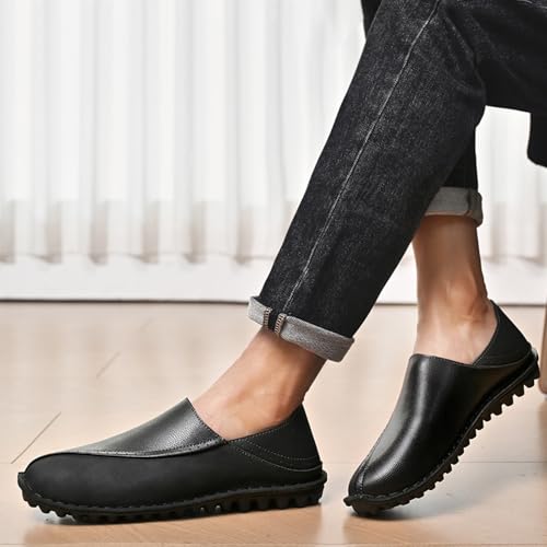 Men's Leather Stitching Rivet Sole Casual Loafers Comfortable Round Toe Hand Stitching Soft Non-Slip One-Step Work Walking Fashion Sports Shoes 7