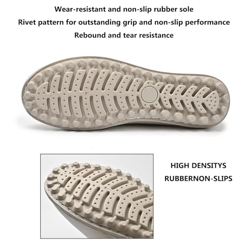Men's Leather Stitching Rivet Sole Casual Loafers Comfortable Round Toe Hand Stitching Soft Non-Slip One-Step Work Walking Fashion Sports Shoes 6