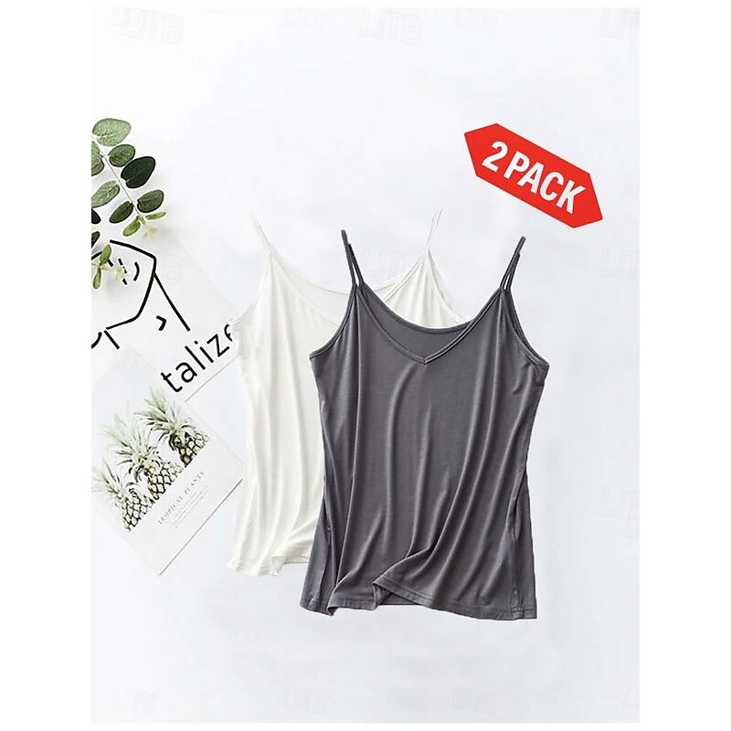 Women's Camisole Tank Top Solid Color Plain Daily Sleeveless Crew Neck Square Neck Scoop Neck Regular Tops Black And White Black / Pink White and Pink Black and gray Gray+White Spring, Fall, Winter 19