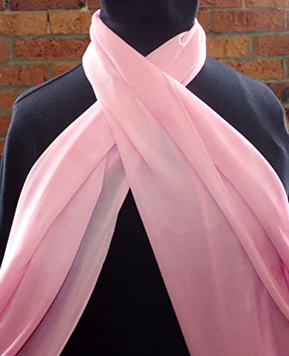 Pink long soft chiffon scarf sheer wrap in shades of light pink to a darker pink ombre color. 68 inches long. 6