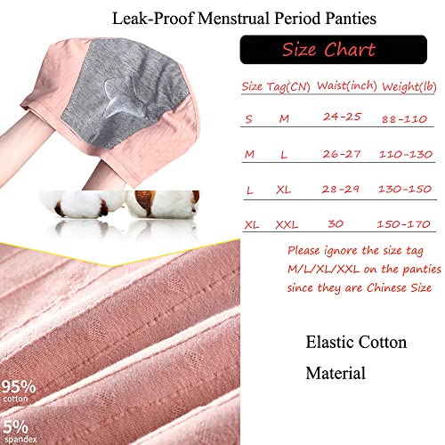 • Value 6 Pack Breathable Period Panties for Girls, Weight Measurement: Size S fits the weight: 88lb-110lb, Size M fits the weight: 110lb-130lb, Size L fits the weight: 130lb-150lb