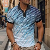 More information about Men's Plaid Golf Shirt Short Sleeve Polo Shirts Collared Shirts Casual Vacation Wear Formal Wear Festival Wear Buttons 3D Print Summer Spring Blue