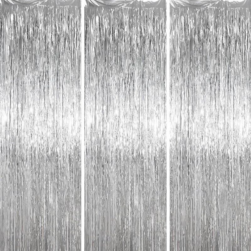 3 Pack Foil Fringe Backdrop Curtains,3.3 x 6.6 ft (1*2M) Tinsel Streamers Party Decorations, Fringe Backdrop for Birthday, Baby Shower, Gender Reveal, Graduation 25
