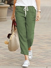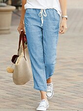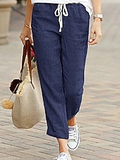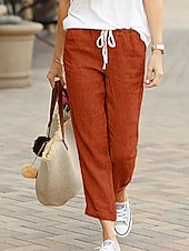 More information about Women's Chinos Fashion Basic Full Length Medium Waist Plain Pocket Drawstring Comfort Outdoor Micro-elastic Vacation Street Daily Black Dark Navy Sky Blue Orange Summer Spring Regular Fit