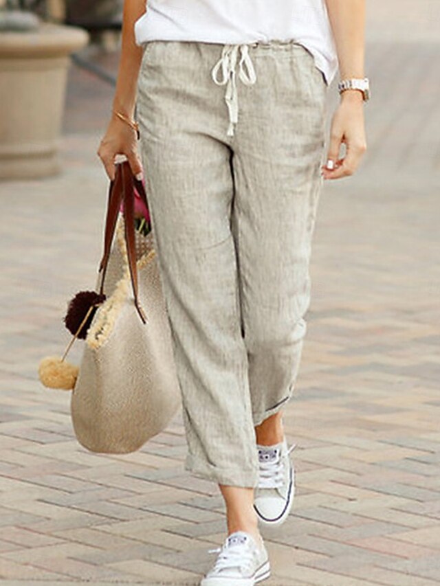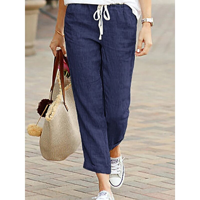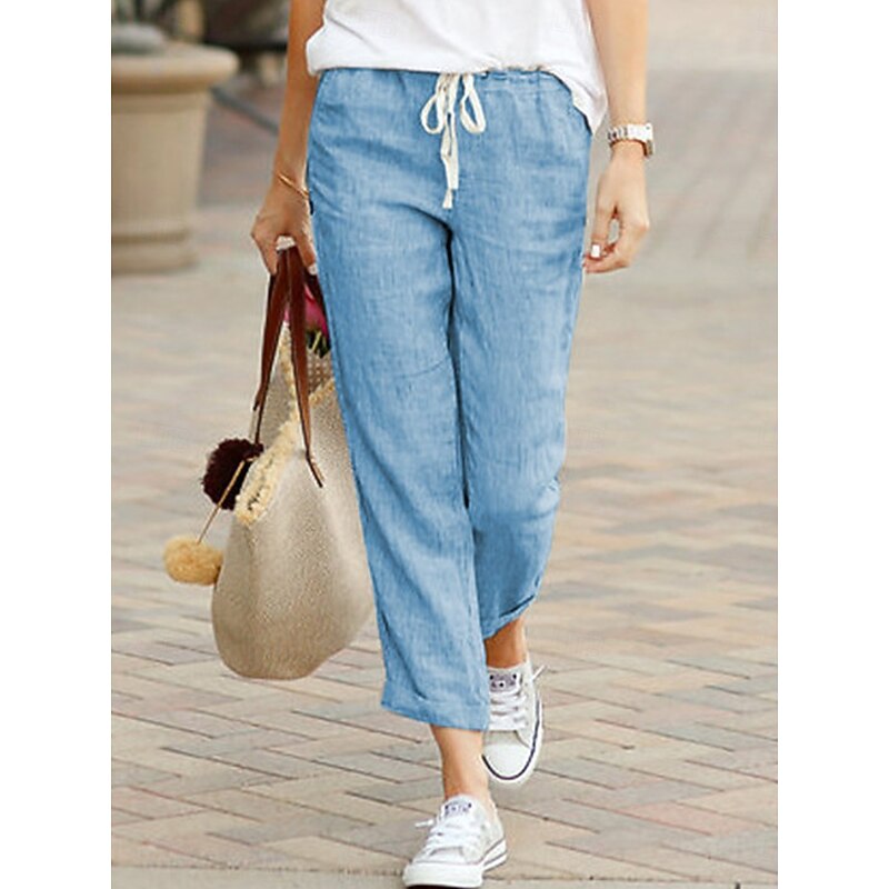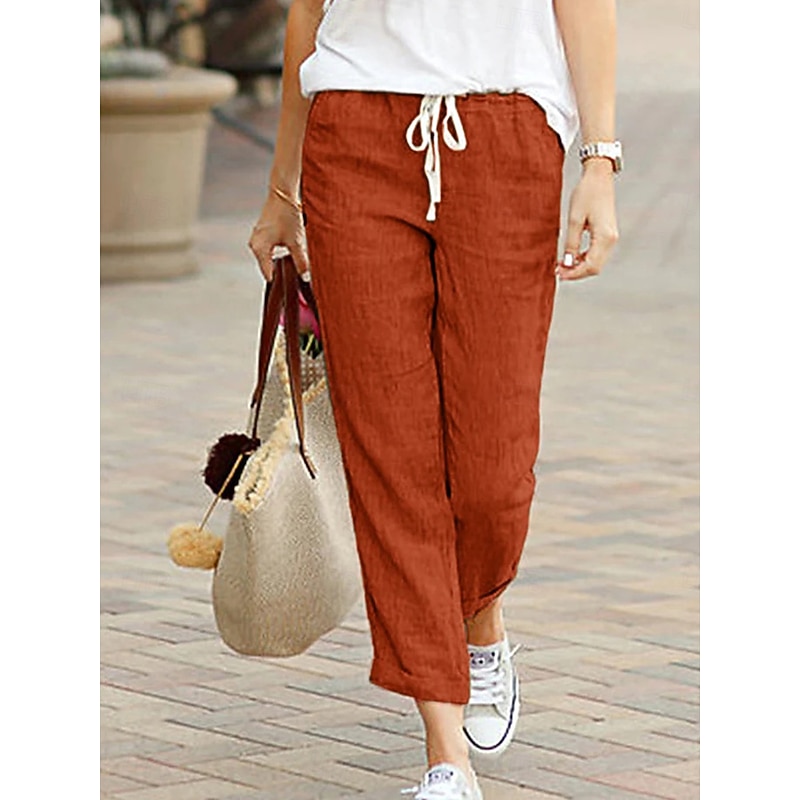 HOT ! Women's Chinos Fashion Basic Full Length Medium Waist Plain Pocket Drawstring Comfort Outdoor Micro-elastic Vacation Street Daily Black Dark Navy Sky Blue Orange Summer Spring Regular Fit
