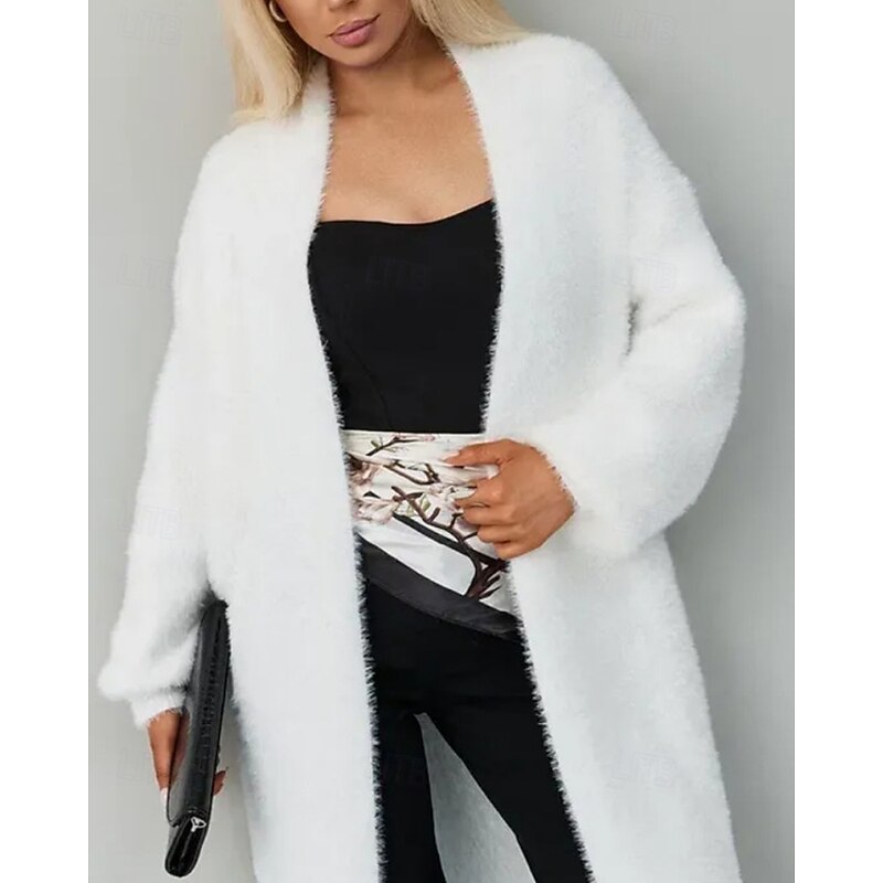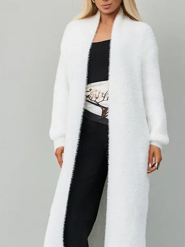 More information about Women's Sweater Cardigan Fashion Streetwear Daily Solid Color Ribbed Open Front Knitted Long Sleeve Long Tops Knit Holiday Going out Weekend White Fall Winter