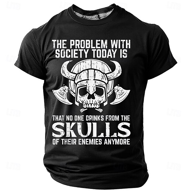 More information about Men's Viking Skull Short Sleeve Graphic T-Shirt - "Problem With Society" Dark Humor Tee