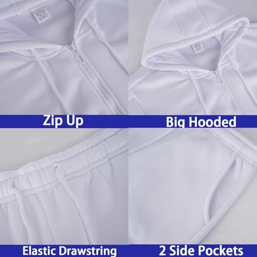 • Pockets Design: Full zip hoodie and jogging pants: Long sleeved jacket with adjustable hood and full zip. Long jogging pants have an elastic waistband and drawstring. The jacket and casual pants both have 2 pockets for storing small items during exercise