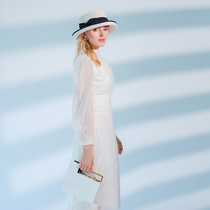 Hats 100% Wool Fedora Hat Casual Tea Party Elegant With Bowknot Headpiece Headwear 20