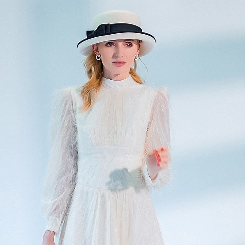 Hats 100% Wool Fedora Hat Casual Tea Party Elegant With Bowknot Headpiece Headwear 10