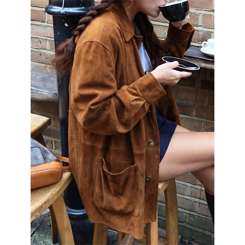 $46.99 - Women's Coat Comfortable Pocket Buttons Fashion Street Style Plain Outdoor Casual Daily Regular Turndown Regular Fit Long Sleeve Outerwear Brown Spring Fall 2025. Shop for cheap Coats & Trench Coats online? Buy at lightinthebox.com on sale today!