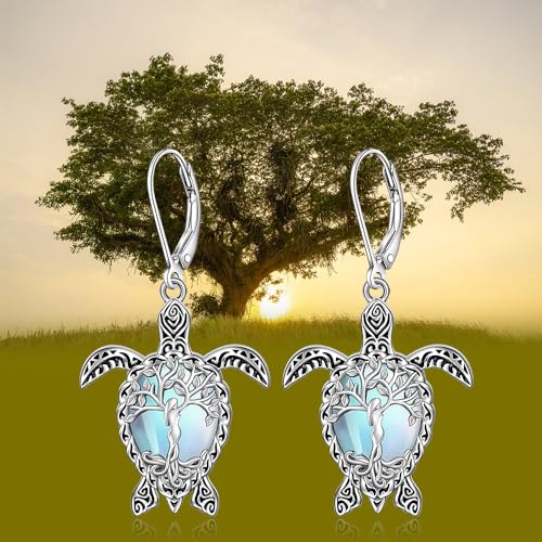 HOT ! Sea Turtle Earrings for Women Moonstone Tree of Life Sea Turtle Gifts Earrings Sterling Silver Dangle Moonstone Leverback Hawaii Ocean Jewelry