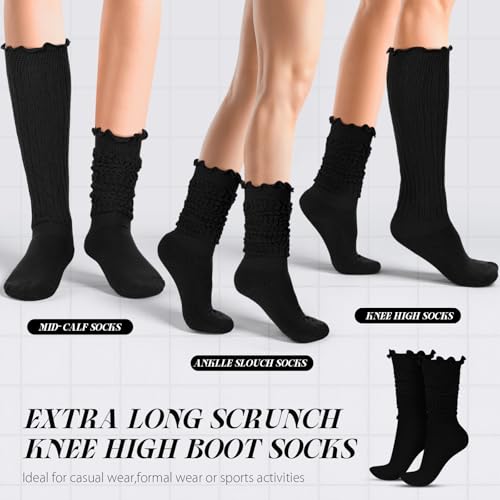 • Versatile Layered Look: Embrace the chic, layered design of our Slouch Socks that seamlessly complements any outfit. These solid pattern Boot Socks come in a classic black color, allowing them to pair well with countless wardrobe options. Nice for sports, yoga, or everyday wear, the versatile Scrunch Socks cater to your diverse lifestyle needs, providing a chic, modern aesthetic