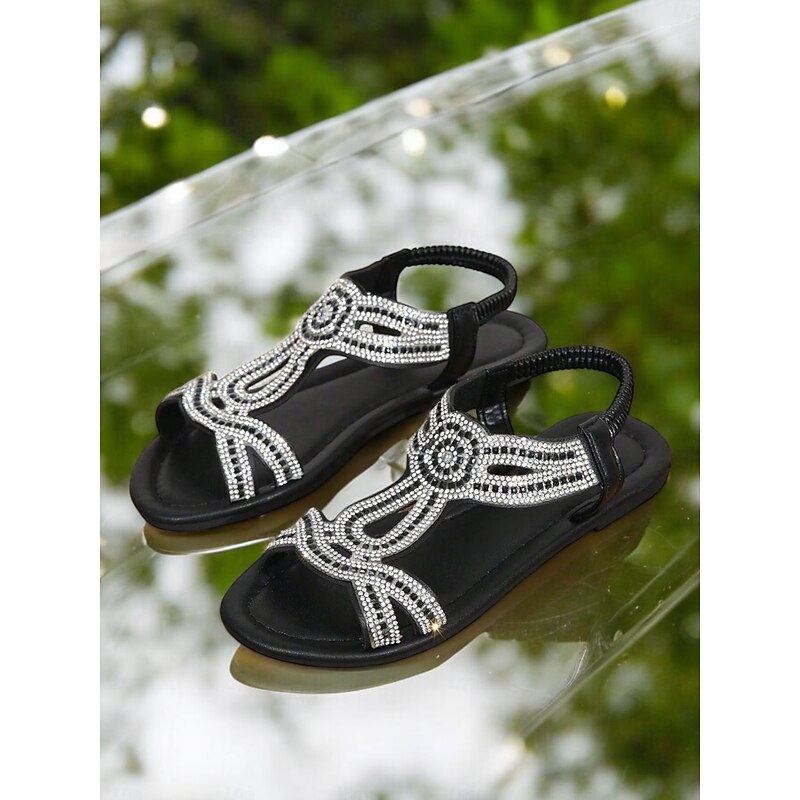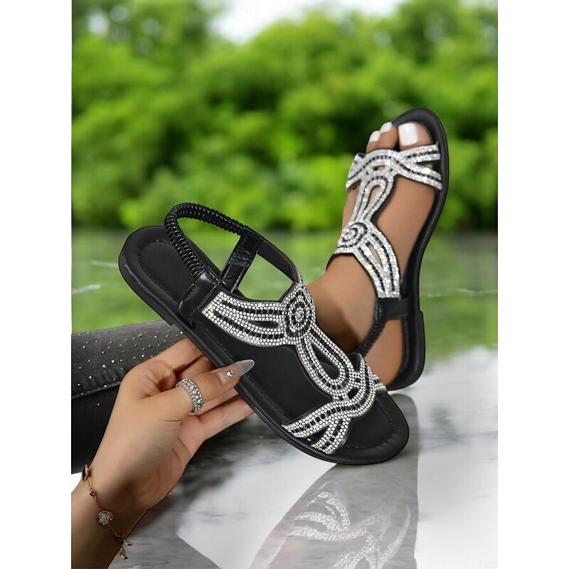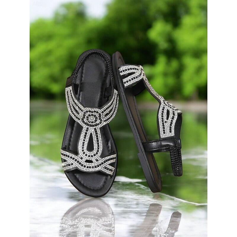 Women's Rhinestone Flat Sandals – Elegant Bohemian Gladiator Sandals for Weddings, Beach & Summer Outfits 1