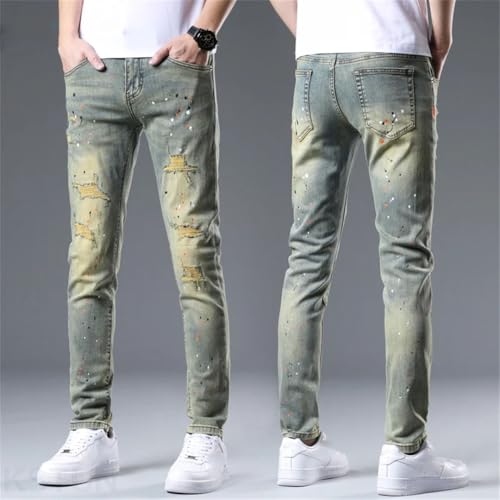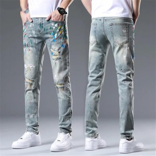 HOT ! Men's Stretch Distressed Slim Skinny Casual Denim Pants Frayed Patchwork Vintage Ripped Jeans