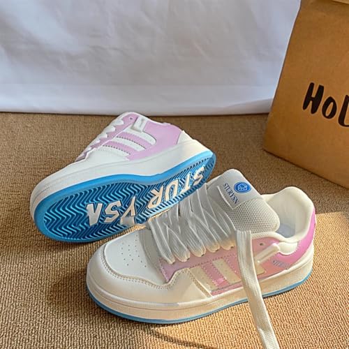 Trendy PU Leather Sneakers with Blue Sole Stur ysn Comfortable Lightweight Casual Shoes Women Stylish Everyday Flats 7