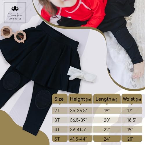 Viscose Girl's Leggings with Skirt and Knee Pads, Black Leggings Girls Toddler Leggings 2t - 5t Leggings 3