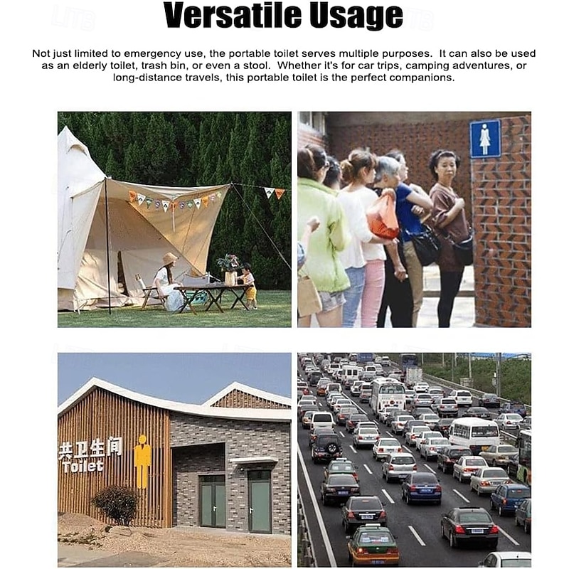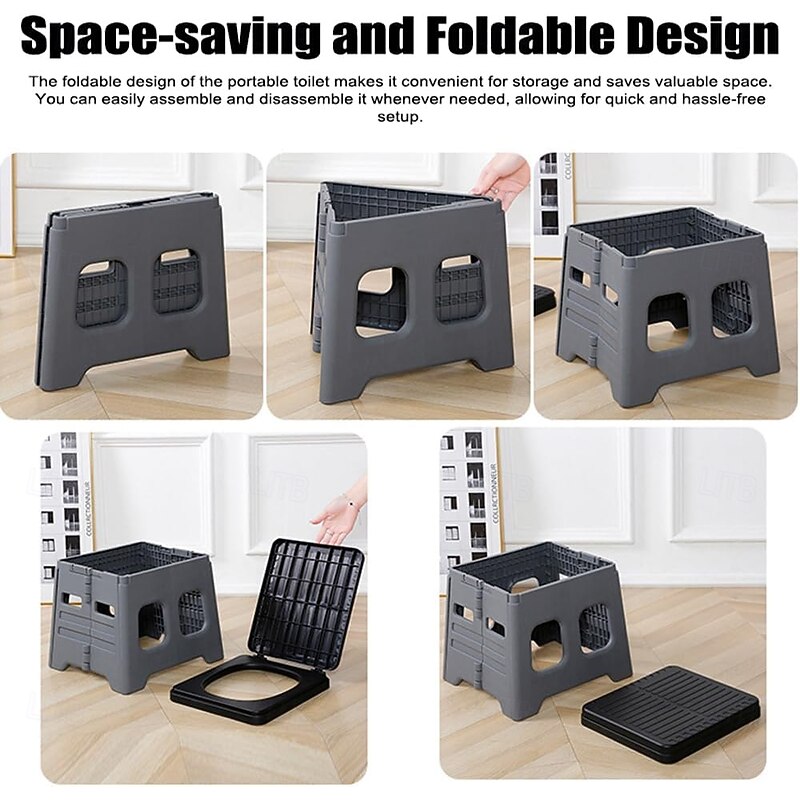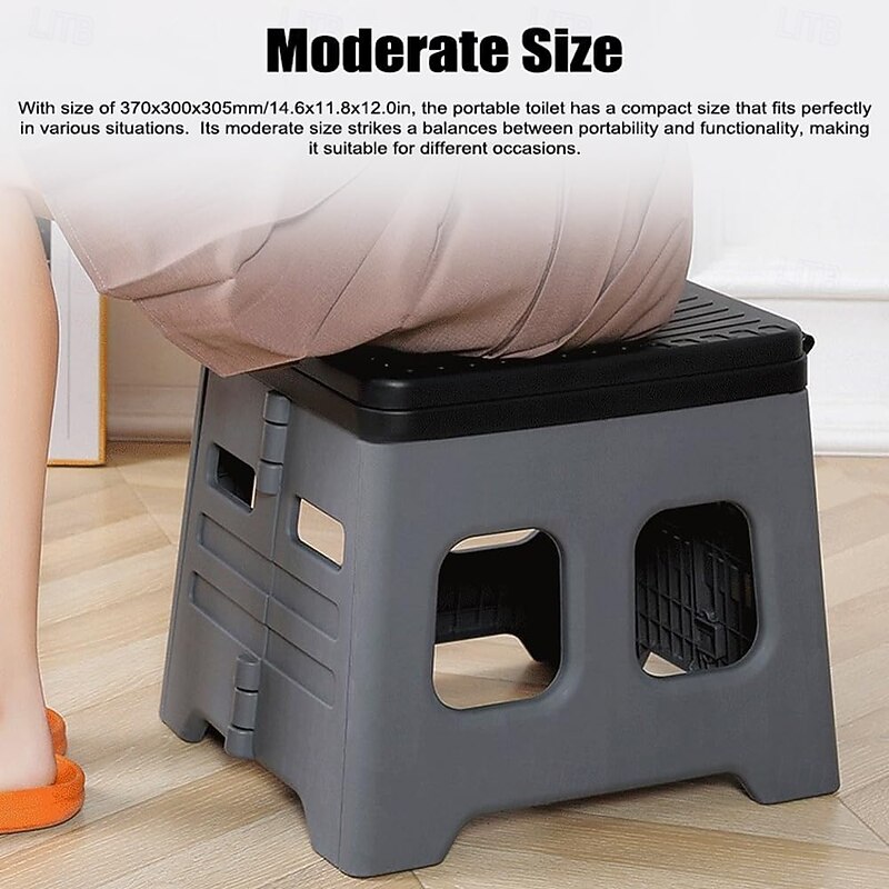Highlights High-Quality Material: The portable toilet is made of premium Polypropylene material, ensuring both ty and environmental friendliness. With its weight design, it is easy to carry around while maintaining exceptional durability. It can withstand up to 150kg of weight without any damage. Sp-saving and Foldable Design: The foldable design of the portable toilet makes it convenient for storage and saves valuable sp. You can easily assemble and disassemble it whenever needed, allowing for quick and hassle-free setup. Hygienic and Odor-resist: Equipped with a lid, the toilet effectively isolates odors, ensuring a ing and sanitary environment. The smooth surf of the toilet seat eliminates any discomfort, providing a comfortable experience for users. Versatile Usage: Not just lid to emergency use, the portable toilet serves mulle purposes. It can also be used as an elderly toilet, trashbin, or even a s. Whether it's for car ts, camping adventures, or long-distance travels, this portable toilet is the perfect s. Moderate Size: With size of 370x300x305mm/14.6x11.8x12.0in, the portable toilet has a compact size that fits perfectly in various situations. Its moderate size s a balances between portability and functionality, making it suitable for different occasions.