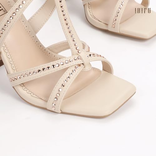 IDIFU IN4 Rhinestone Heels for Women Strappy High Chunky Block Heels Square Toe Slingback Dress Shoes Wedding Bridal Prom Party Heeled Sandals Dressy Sexy Sparkly Thick Heels 5