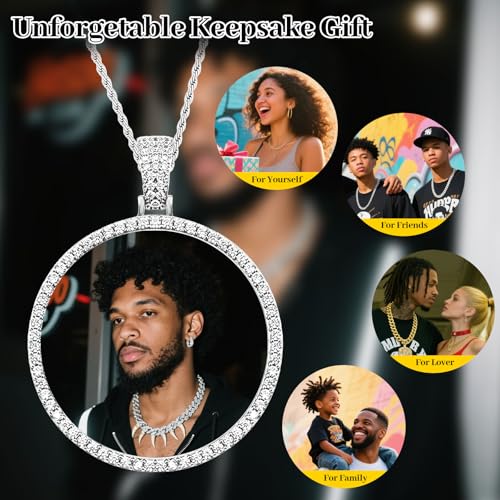 • Exquisite Craftsmanship: Crafted with premium copper, necklace with picture inside is durable, resistant to rust, anti-fading. Thicker chains will be long-lasting. Sparkling AAA+ cubic zirconia stones add a touch of luxury, ensuring your men necklace chain shines brightly in any light. High-quality round photo frames can maximize the true colors of your photos and protect your photos to prevent from scratches.