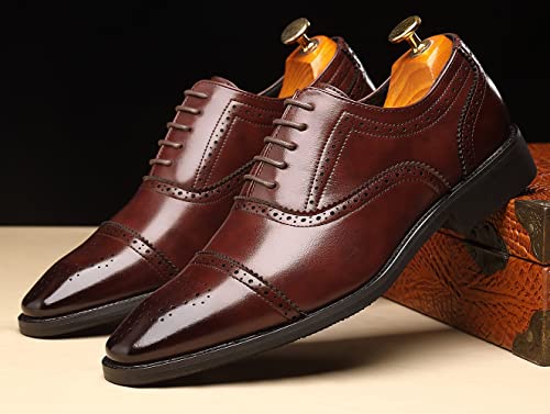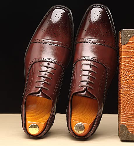 Santimon Men's Casual Dress Shoes Cap Oxfords Faux Leather Tuxedo Dress Shoes Classic Lace-up Formal Derby Loafers 7