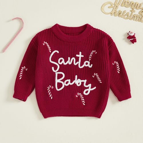 • Design: Christmas sweater for girl,long sleeve sweater,sweaters with long sleeves,toddler sweaters girls,toddler girls sweater; Red long sleeve round neck letter embroidery knitwear; Loose fit and skin-friendly