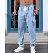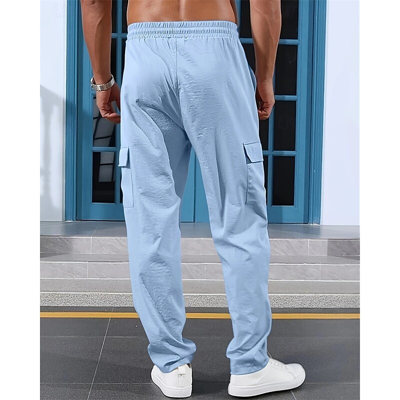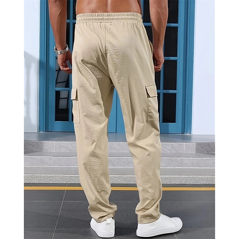 More information about Men's Linen Pants Trousers Summer Pants Beach Pants Elastic Waist Drawstring Multi Pocket Plain Comfort Breathable Vacation Daily Holiday Hawaiian Boho Black White