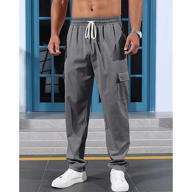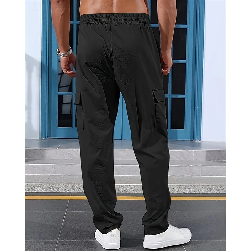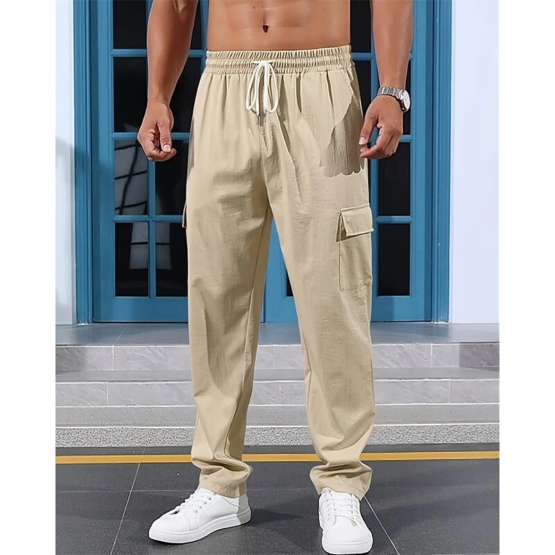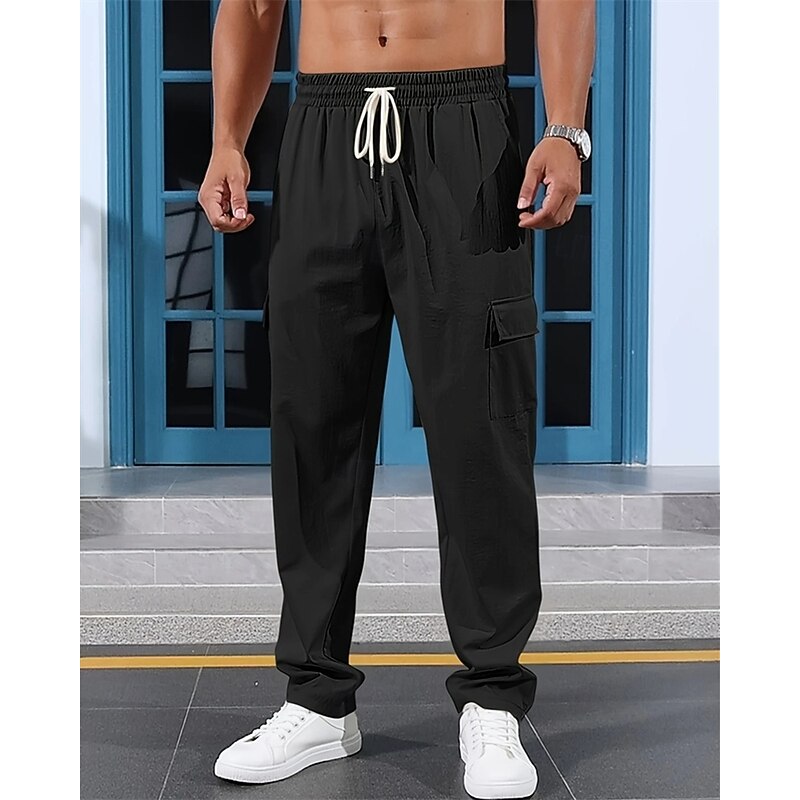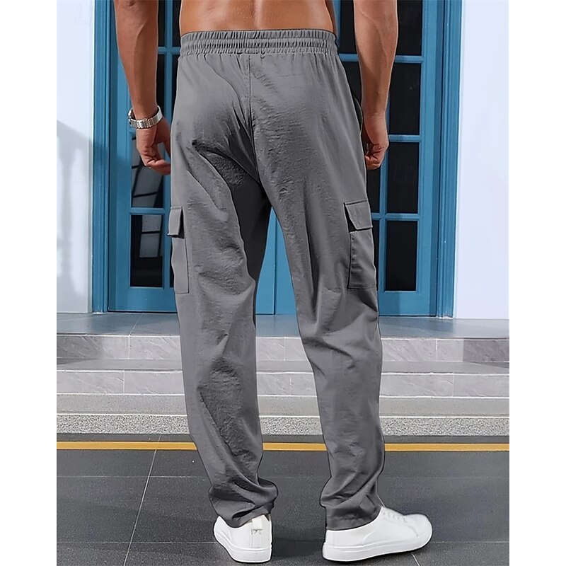 HOT ! Men's Linen Pants Trousers Summer Pants Beach Pants Elastic Waist Drawstring Multi Pocket Plain Comfort Breathable Vacation Daily Holiday Hawaiian Boho Black White