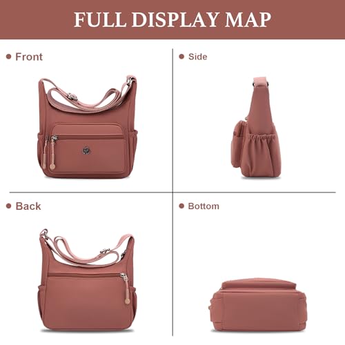 • 【Multi-Pocket Design】: Featuring 2 front pockets, 2 side pockets, 1 back pocket, plus a spacious main compartment, and an interior zippered pocket. The nylon crossbody bags for Woman makes it easy to organize such as mobile phones, wallet, sunglasses, sanitizing wipes, keys, cards, lipstick, coins, headphones and essentials neatly separated. No more digging through a messy bag!