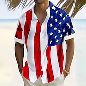 More information about Independence Day Men's US Flag Patriotic Fourth of July Shirt Summer Shirt Button Up Shirt Short Sleeve Fashion Casual Outdoor Vacation Dailywear Summer Turndown 3D Print Linen Like Shirt White