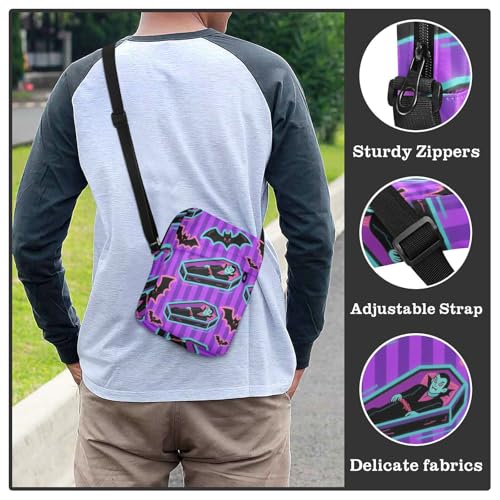 KLL Vampire Tomb Bats Purple cute messenger bag Vegan Leather mens crossbody Travel Shoulder Hand Bags 3