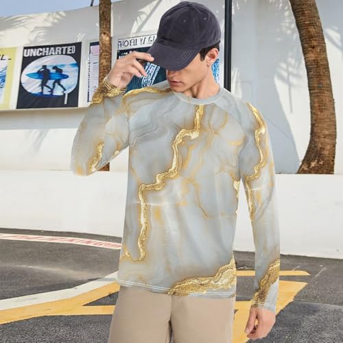 Marble White Gold Shirts Summer UPF 50+ Slim fit Long Sleeve UV Sun Protection Hiking 1