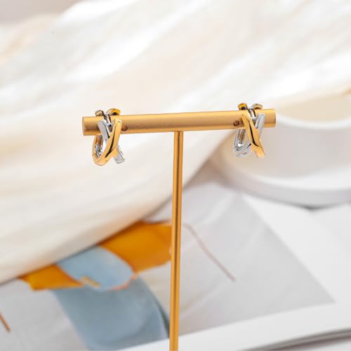 • Unique Design : Features hoop earrings for women with huggie structure, enhanced by twisted hoop earrings details in a striking X-shaped crossover design.