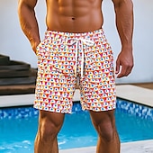 More information about Men's Geometric Pattern Swim Trunks Swim Shorts Board Shorts Mid Waist Hawaiian Casual Vacation Holiday Beach Wear Side Pockets Mesh Lining Elastic Drawstring Waist Designer Clothing Apparel