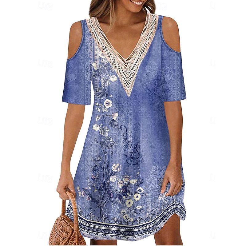 More information about Women's Long Dress Maxi Dress A Line Dress Boho Dress Elegant Stylish Casual Vacation Daily Regular Fit Floral Short Sleeve V Neck Red Blue Purple Green Summer Spring
