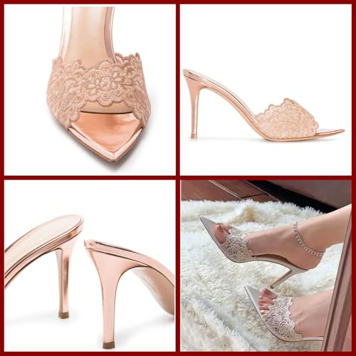 More information about Women's Lace Pointed Open Toe Stiletto Mules, 3-inch High Heel Slip-On Sandals, Sexy Mesh Backless Mule Shoes for Party, Wedding, and Prom Dress