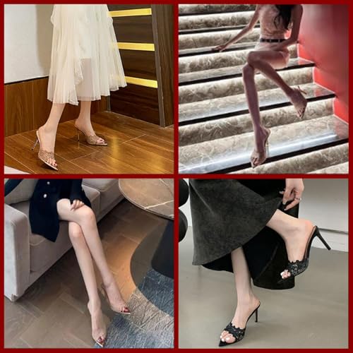 HOT ! Women's Lace Pointed Open Toe Stiletto Mules, 3-inch High Heel Slip-On Sandals, Sexy Mesh Backless Mule Shoes for Party, Wedding, and Prom Dress