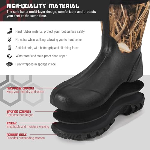 HOT ! Waterproof Rubber Rain Boots with 6 mm Neoprene for Hunting, 10" Mid-calf Rubber Boots with Anti-Slip Sole for Mud Gardening Farming Working Outdoor Fishing, Size 6-14