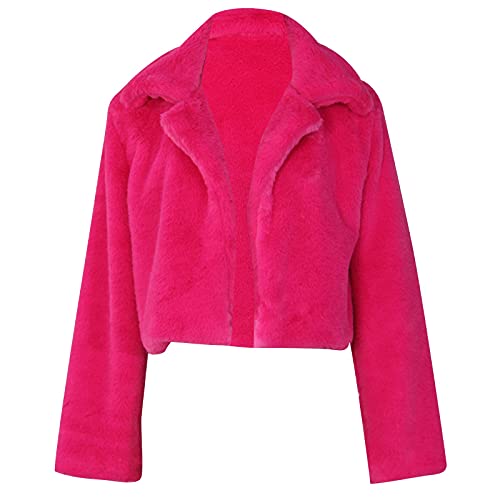 Womens Short Fur Coat Fluffys Fleece Outwear Turn-Down Collar Faux Furs Tops Winter Warm Sweater Jacket 6