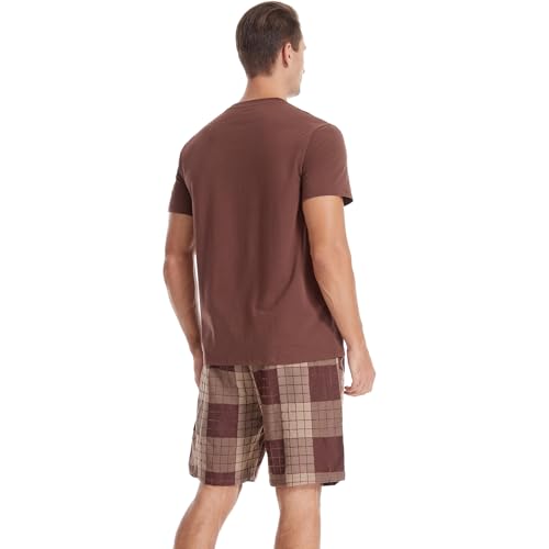Men's Short Sleeve Pajama Set with Pockets 2-Piece Nightwear for Summer Lightweight Men's PJS 7