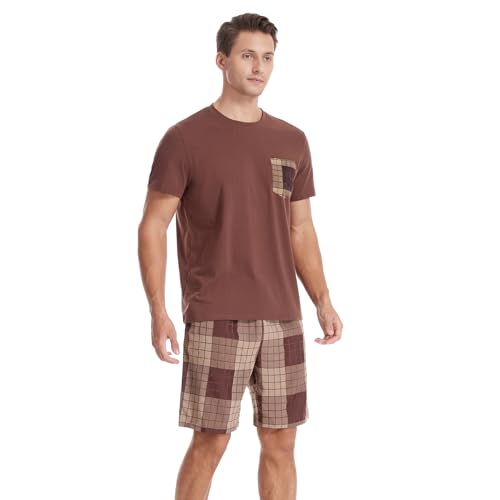 Men's Short Sleeve Pajama Set with Pockets 2-Piece Nightwear for Summer Lightweight Men's PJS 2