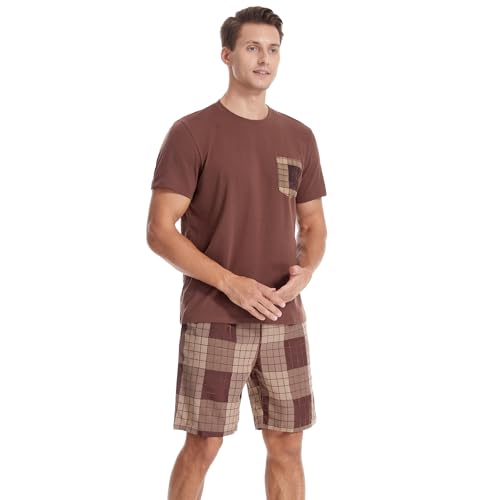 HOT ! Men's Short Sleeve Pajama Set with Pockets 2-Piece Nightwear for Summer Lightweight Men's PJS