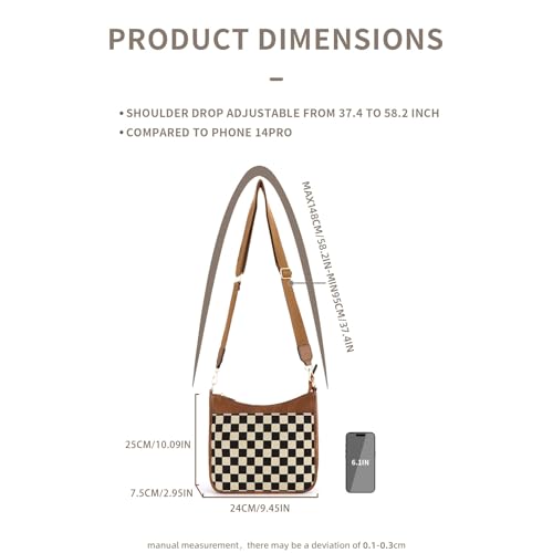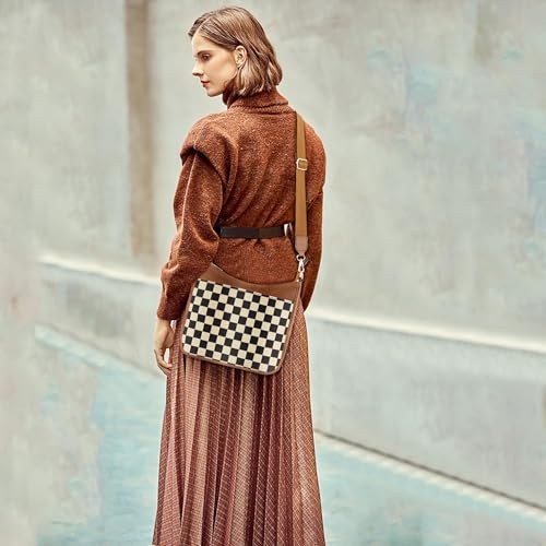 More information about Women's Checkered Crossbody Bag – Quilted Seam Trendy Vegan Leather Shoulder Bag with Embroidered Strap