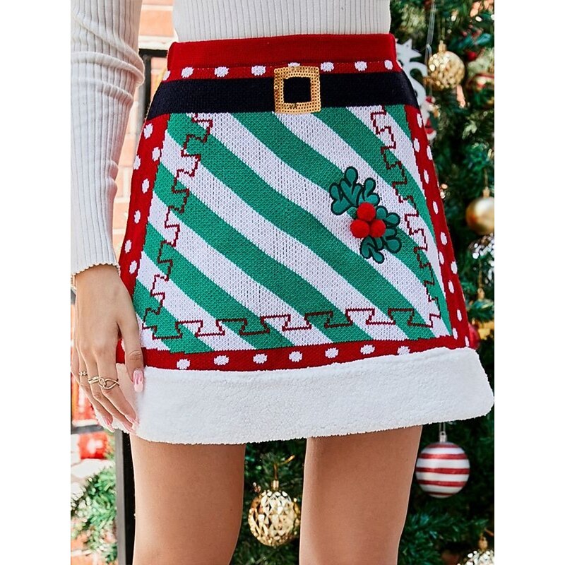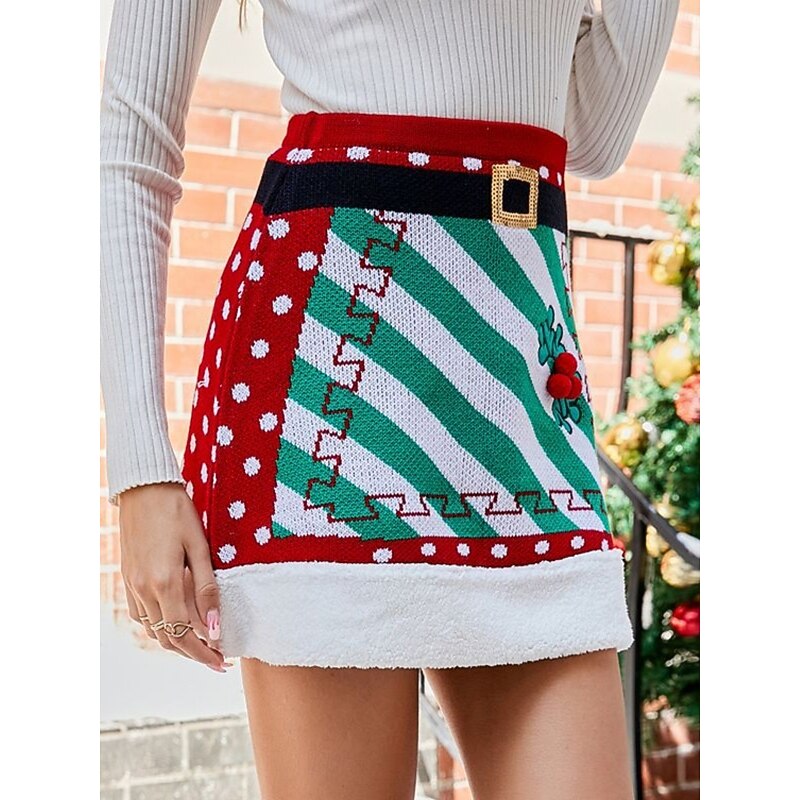 More information about Women's Skirt A Line Fashion Casual Mini High Waist Skirts Graphic Knitting Micro-elastic Christmas Street Red Spring Knit Polyester