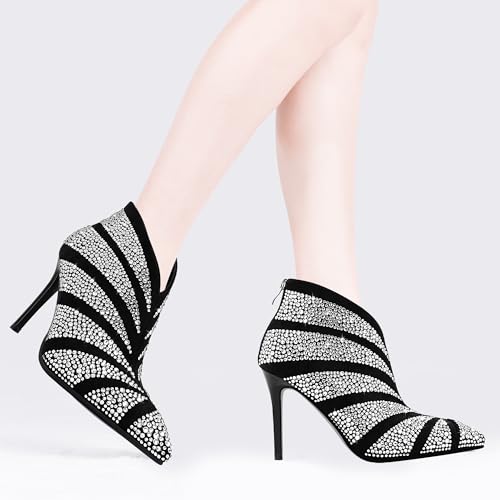 Women's Rhinestone Pointed Toe Stiletto High Heel Ankle Boots Suede Dress Booties 6